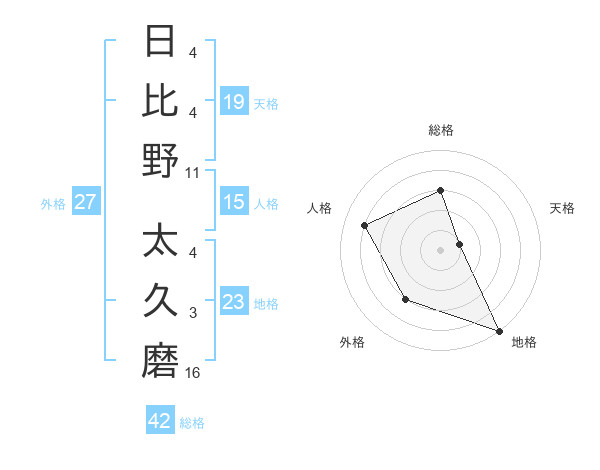日比野 太久磨さんを姓名の画数から五運を鑑定