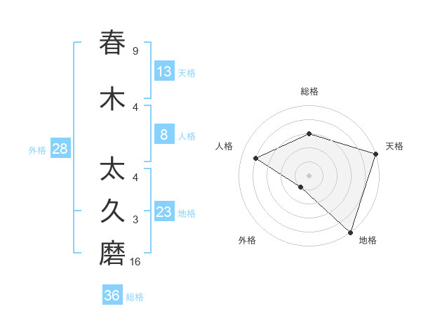 春木 太久磨さんの天格は13画の5点!
