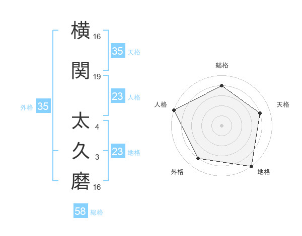 横関 太久磨さんを姓名の画数から五運を鑑定