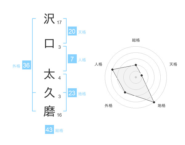 沢口 太久磨さんを姓名の画数から五運を鑑定