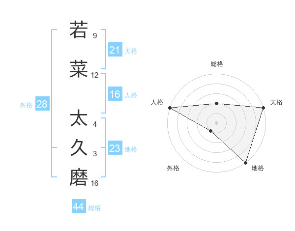 若菜 太久磨さんを姓名の画数から五運を鑑定