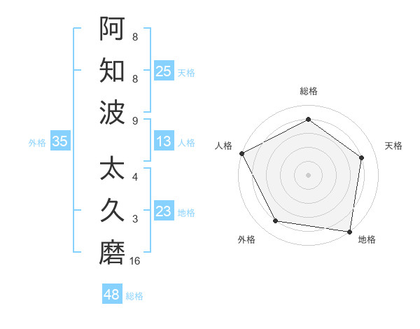 阿知波 太久磨さんの天格は25画の4点!