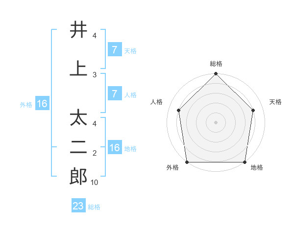 井上 太二郎さんを姓名の画数から五運を鑑定