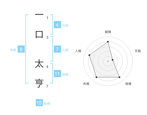 一口 太亨さんの総格は15画の4点!