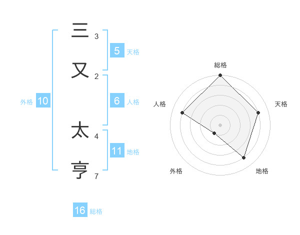 三又 太亨さんの天格は5画の4点!