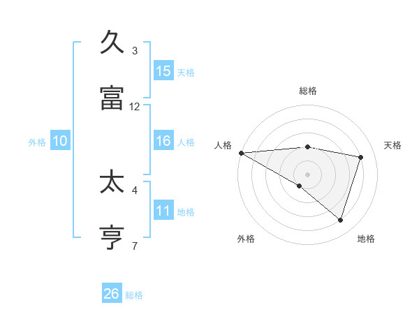 久富 太亨さんの総格は26画の2点!