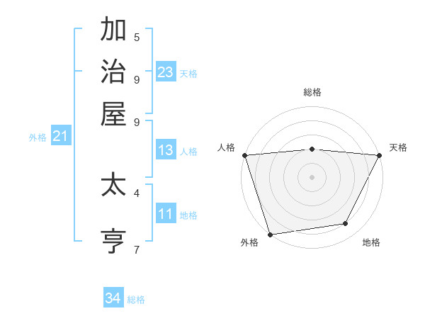 加治屋 太亨さんの天格は23画の5点