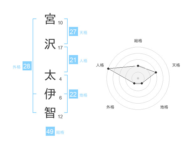 宮沢 太伊智さんを姓名の画数から五運を鑑定