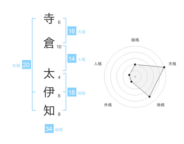 寺倉 太伊知さんを姓名の画数から五運を鑑定