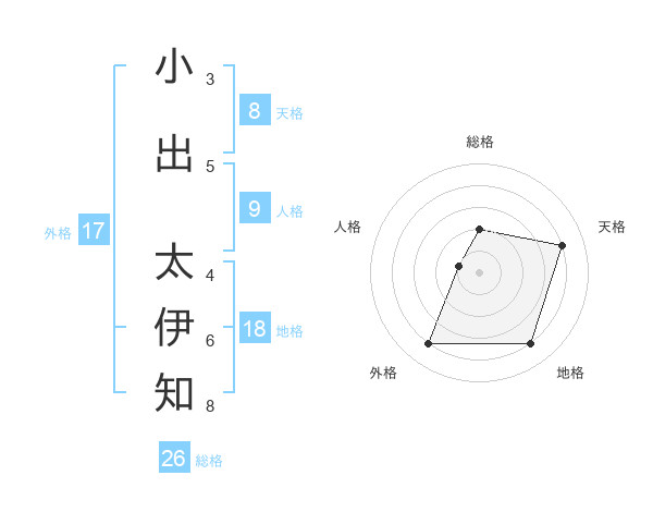 小出 太伊知さんの天格は8画の4点!