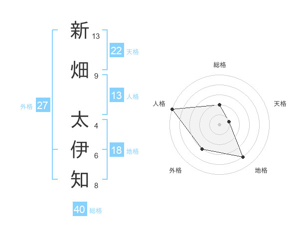 新畑 太伊知さんを姓名の画数から五運を鑑定