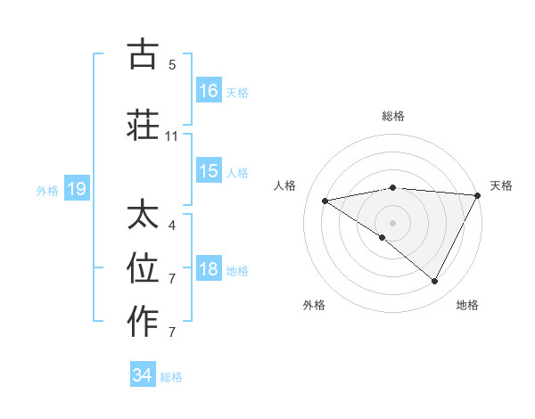 古荘 太位作さんを姓名の画数から五運を鑑定