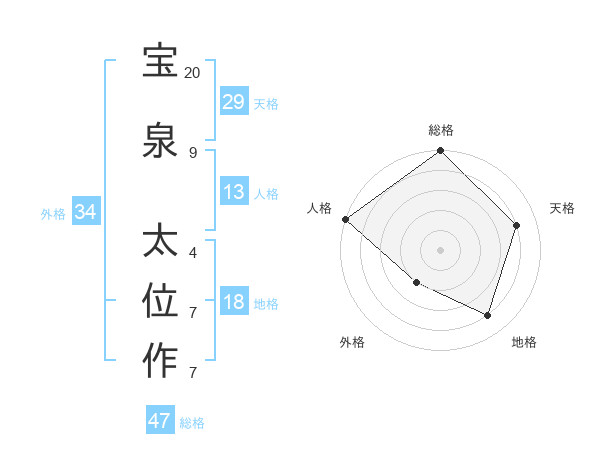 宝泉 太位作さんを姓名の画数から五運を鑑定