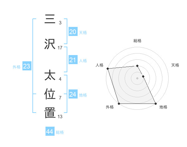 三沢 太位置さんを姓名の画数から五運を鑑定
