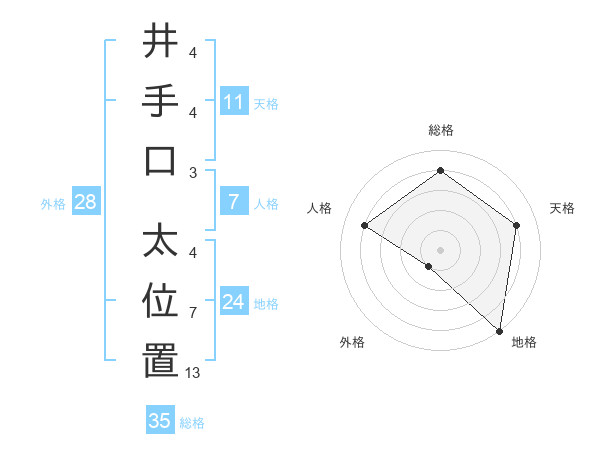 井手口 太位置さんの総格は35画の4点!