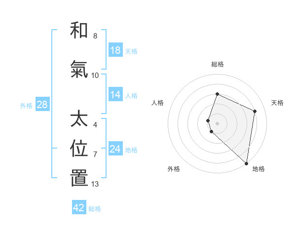 和氣 太位置さんの天格は18画の4点!