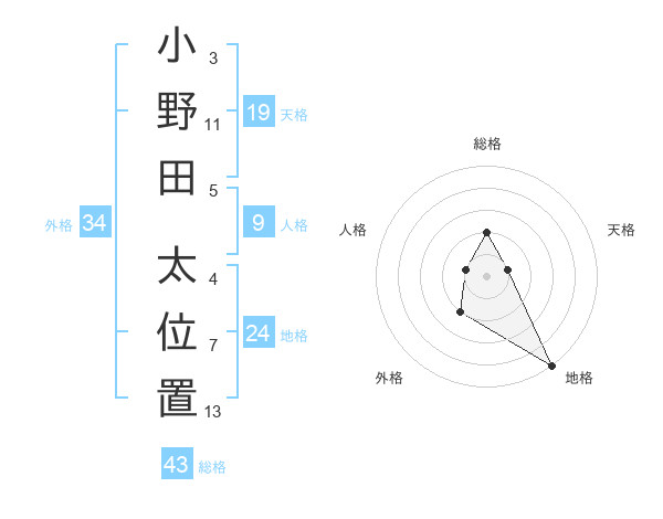 小野田 太位置さんを姓名の画数から五運を鑑定
