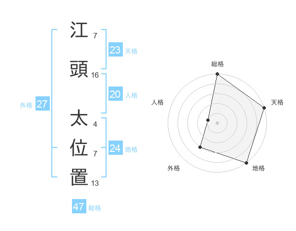 江頭 太位置さんを姓名の画数から五運を鑑定