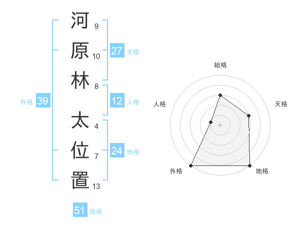 河原林 太位置さんを姓名の画数から五運を鑑定