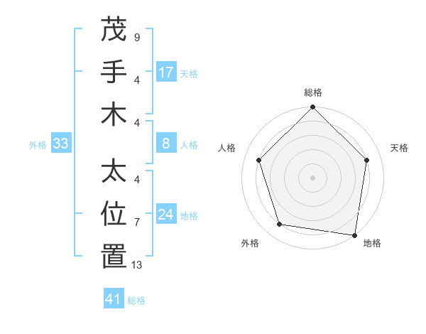 茂手木 太位置さんを姓名の画数から五運を鑑定