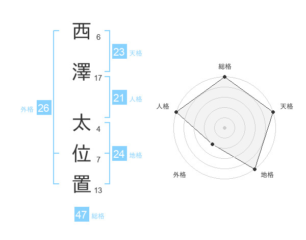 西澤 太位置さんを姓名の画数から五運を鑑定
