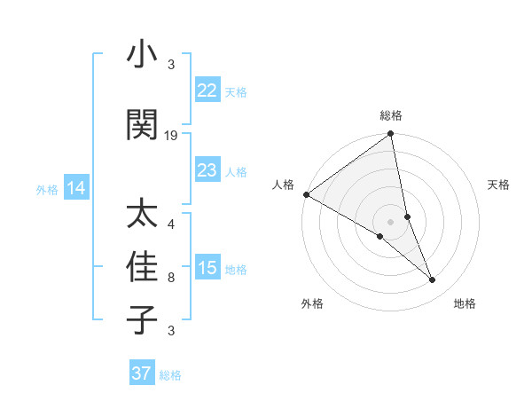 小関 太佳子さんを姓名の画数から五運を鑑定