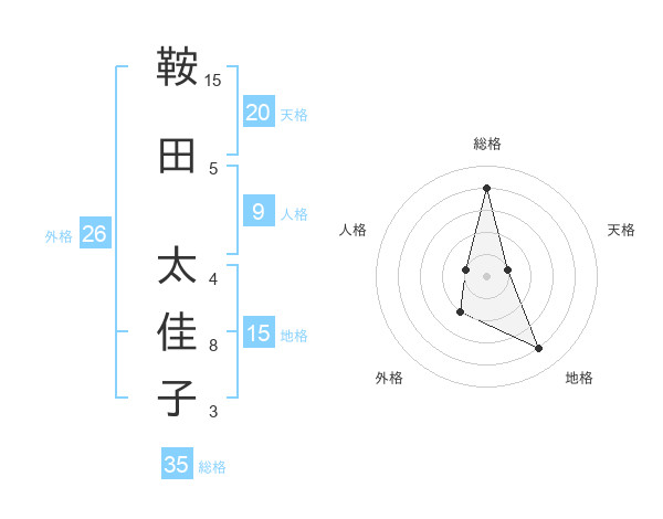 鞍田 太佳子さんを姓名の画数から五運を鑑定