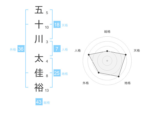 五十川 太佳裕さんを姓名の画数から五運を鑑定