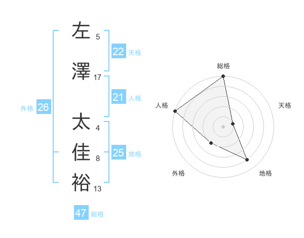 左澤 太佳裕さんを姓名の画数から五運を鑑定