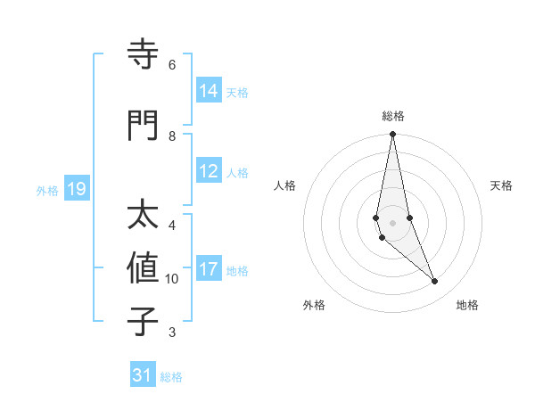 寺門 太値子さんの総格は31画の5点!