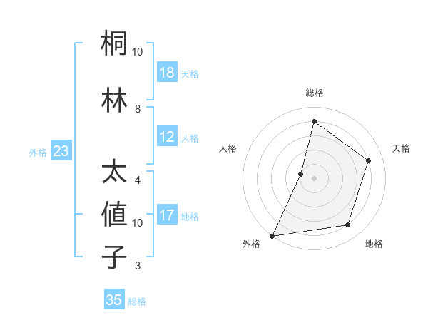 桐林 太値子さんの外格は23画の5点