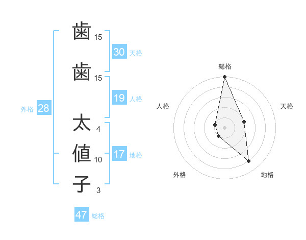 歯歯 太値子さんの総格は47画の5点!