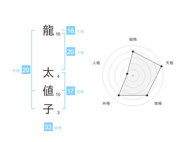 龍 太値子さんの天格は16画の5点!