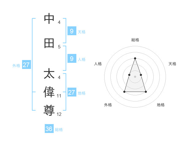 中田 太偉尊さんを姓名の画数から五運を鑑定