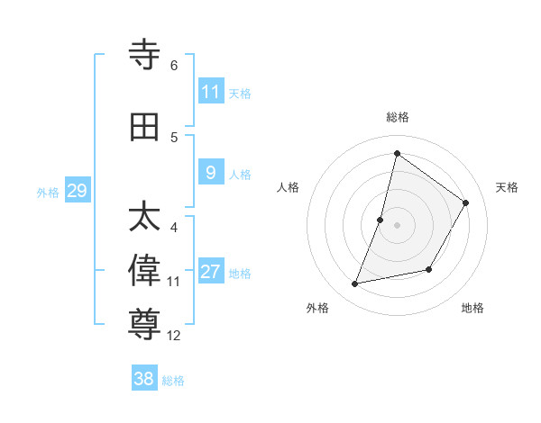 寺田 太偉尊さんを姓名の画数から五運を鑑定