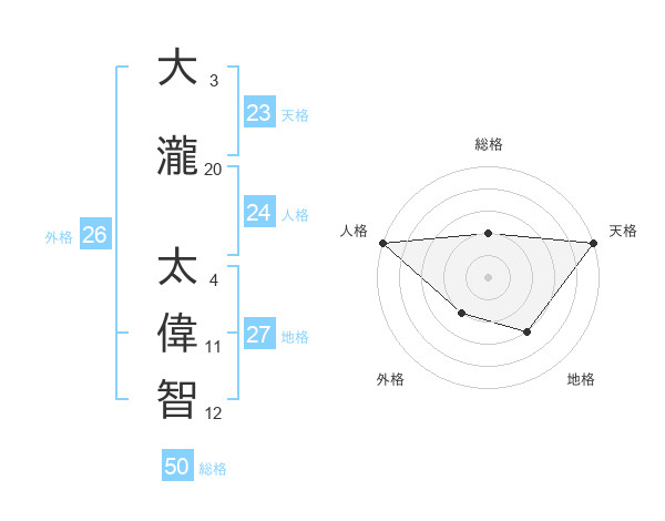 大瀧 太偉智さんを姓名の画数から五運を鑑定