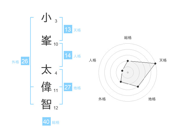 小峯 太偉智さんを姓名の画数から五運を鑑定