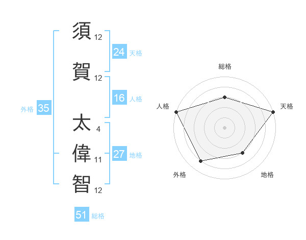 須賀 太偉智さんを姓名の画数から五運を鑑定