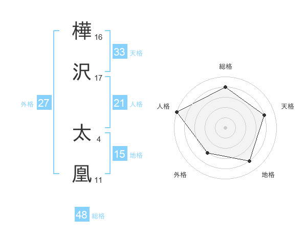 樺沢 太凰さんを姓名の画数から五運を鑑定