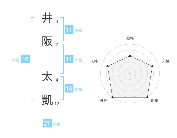 井阪 太凱さんを姓名の画数から五運を鑑定