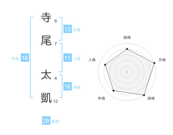 寺尾 太凱さんを姓名の画数から五運を鑑定