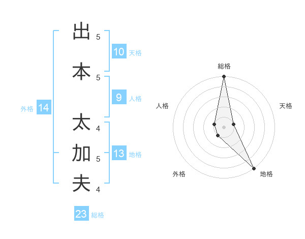 出本 太加夫さんの総格は23画の5点!