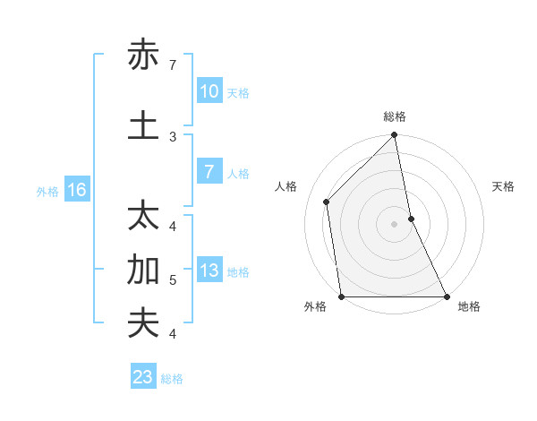 赤土 太加夫さんの総格は23画の5点!