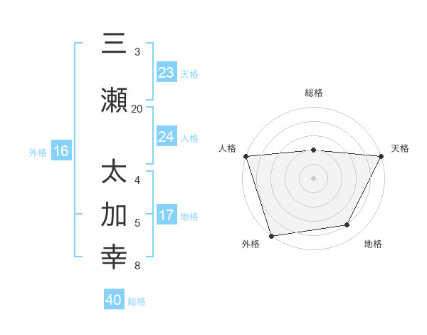 三瀬 太加幸さんを姓名の画数から五運を鑑定