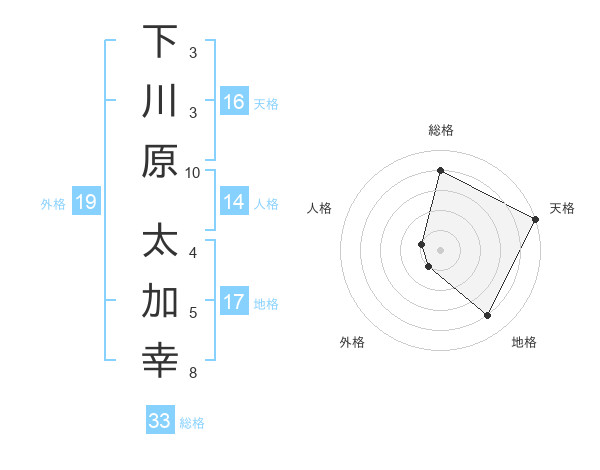 下川原 太加幸さんの総格は33画の4点!