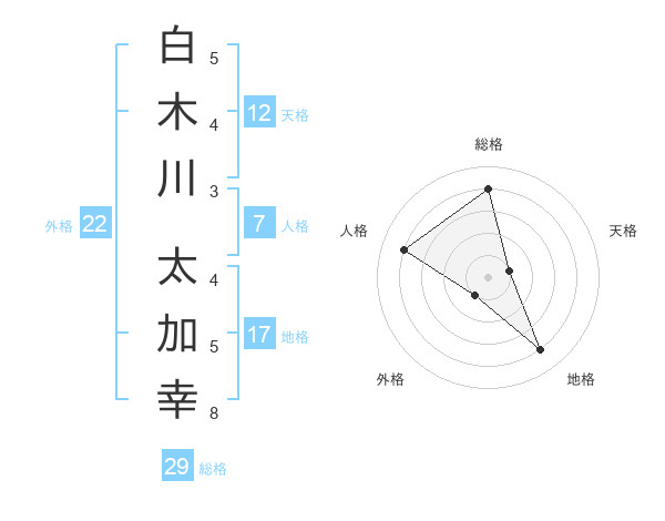 白木川 太加幸さんの総格は29画の4点!