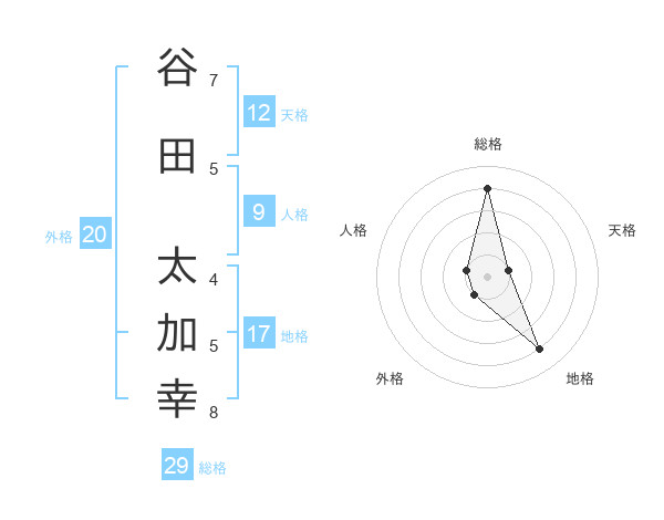谷田 太加幸さんを姓名の画数から五運を鑑定