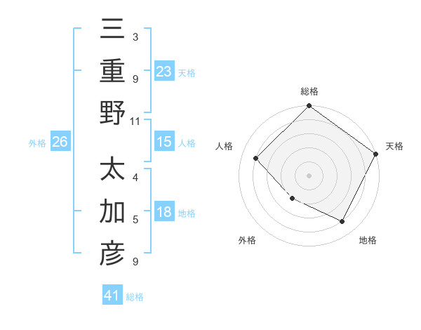 三重野 太加彦さんの総格は41画の5点!