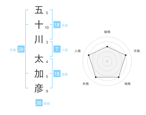 五十川 太加彦さんを姓名の画数から五運を鑑定
