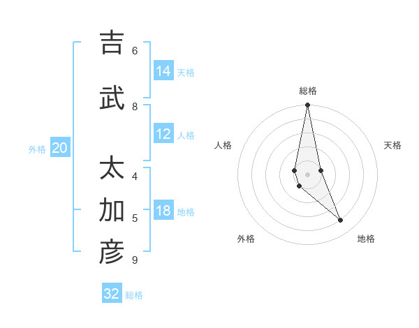 吉武 太加彦さんを姓名の画数から五運を鑑定